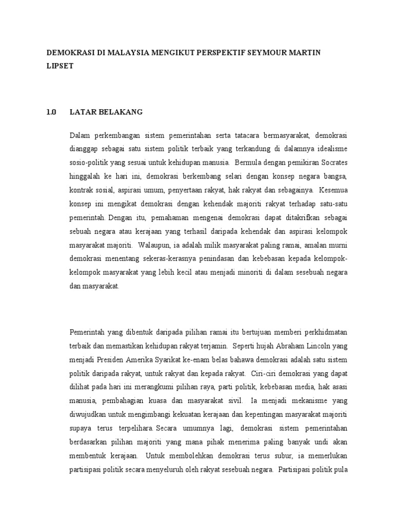 Doc Struktur Sistem Demokrasi Di Muhammad Fazzuan Academia Edu from 0.academia-photos.com Kebaikan sistem demokrasi di malaysia. Selain itu, daripada sistem yang telah diamalkan di malaysia iaitu sistem demokrasi ini, rakyat berhak berkuasa melalui media massa dan teknologi pada masa kini. Rakyat malaysia telah memberikan mandat dan meletakkan. Manakala dalam sistem demokrasi berperwakilan, rakyat memilih seorang wakil untuk mewakili mereka dalam hal ehwal politik dan perundangan. Tingkatan 5 bab 7 nota sejarah pages 1 21 text version anyflip. Ia tentang keselamatan negara dan ia beri kuasa kepada kerajaan dan perdana menteri hak untuk menahan pesalah tanpa perbicaraan. Malaysia juga merupakan sebuah negara yang mengamalkan sistem demokrasi berasaskan kepada sistem persekutuan. Di sini letaknya kuasa rakyat iaitu memilih wakil untuk